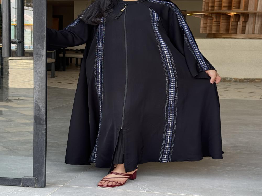 - عبايه حرير ملونه با لون الجذاب مزينه بفصوص في الموديل تمد من الكتف الى الاكمام مما يمنحها لمسة عصرية ومميزة.